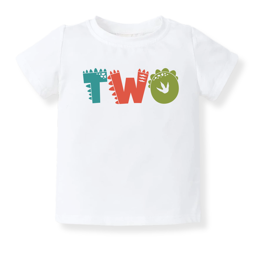 "TWO" Dinosaur Baby Onesie, 2nd Birthday Toddler T-Shirt, Cute Dinosaur Birthday Outfit for Kids, Boys & Girls, Second Birthday Shirt